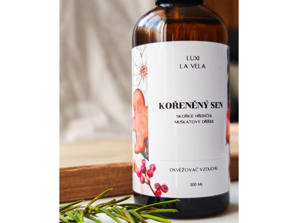 Kořeněný sen - osvěžovač vzduchu s esenciálním olejem skořice, hřebíčku a muškátového oříšku