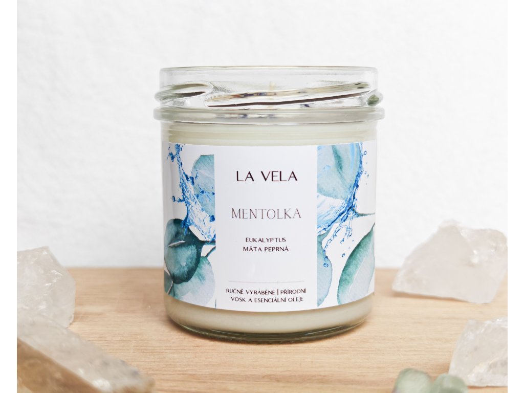 Mentolka 130 ml - svíčka s esenciálním olejem eukalyptu a máty peprné