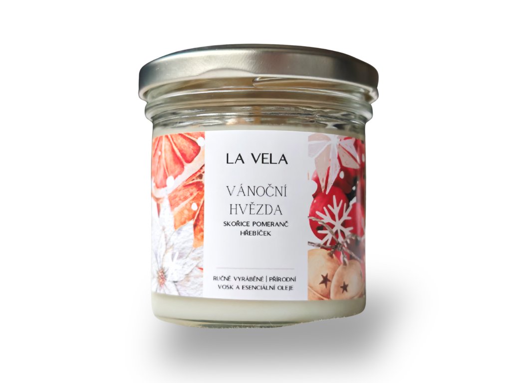 Vánoční hvězda 130 ml - svíčka s esenciálním olejem skořice, hřebíčku a pomeranče